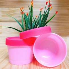 - Hũ kem đựng mỹ phẩm màu hồng, nắp cùng màu tông đậm.